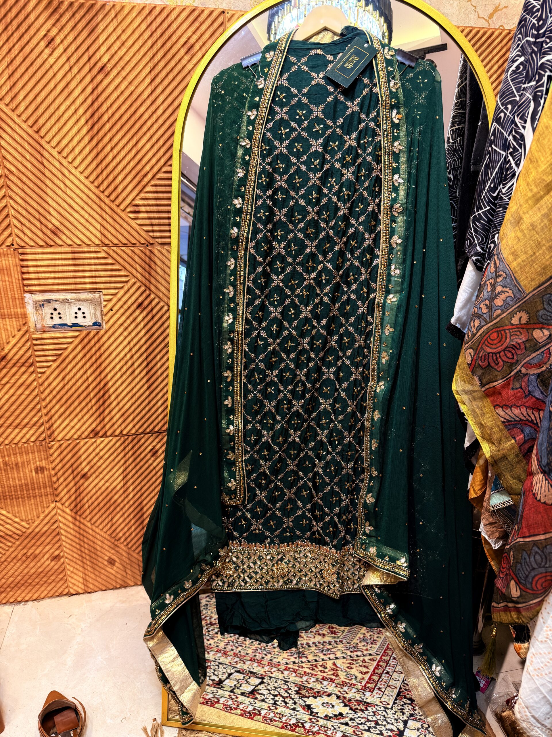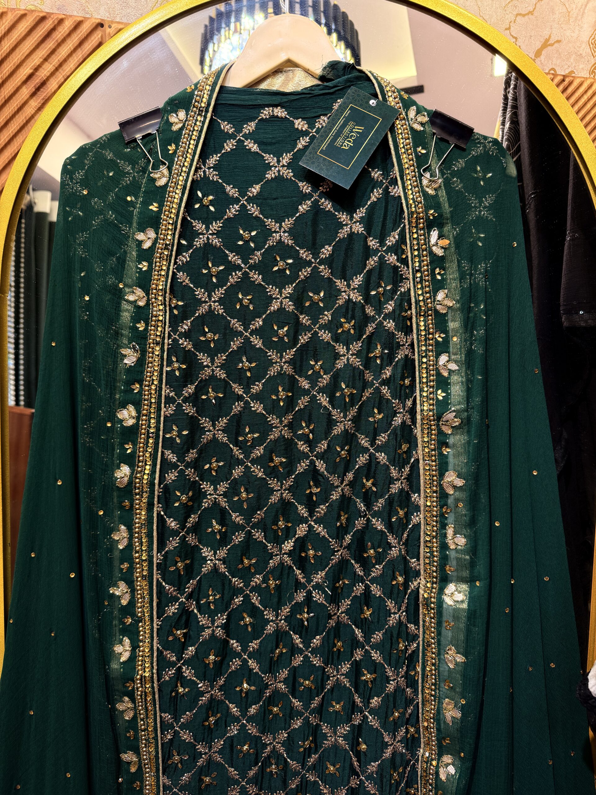 • Zari jal with sequence and hand embroidery