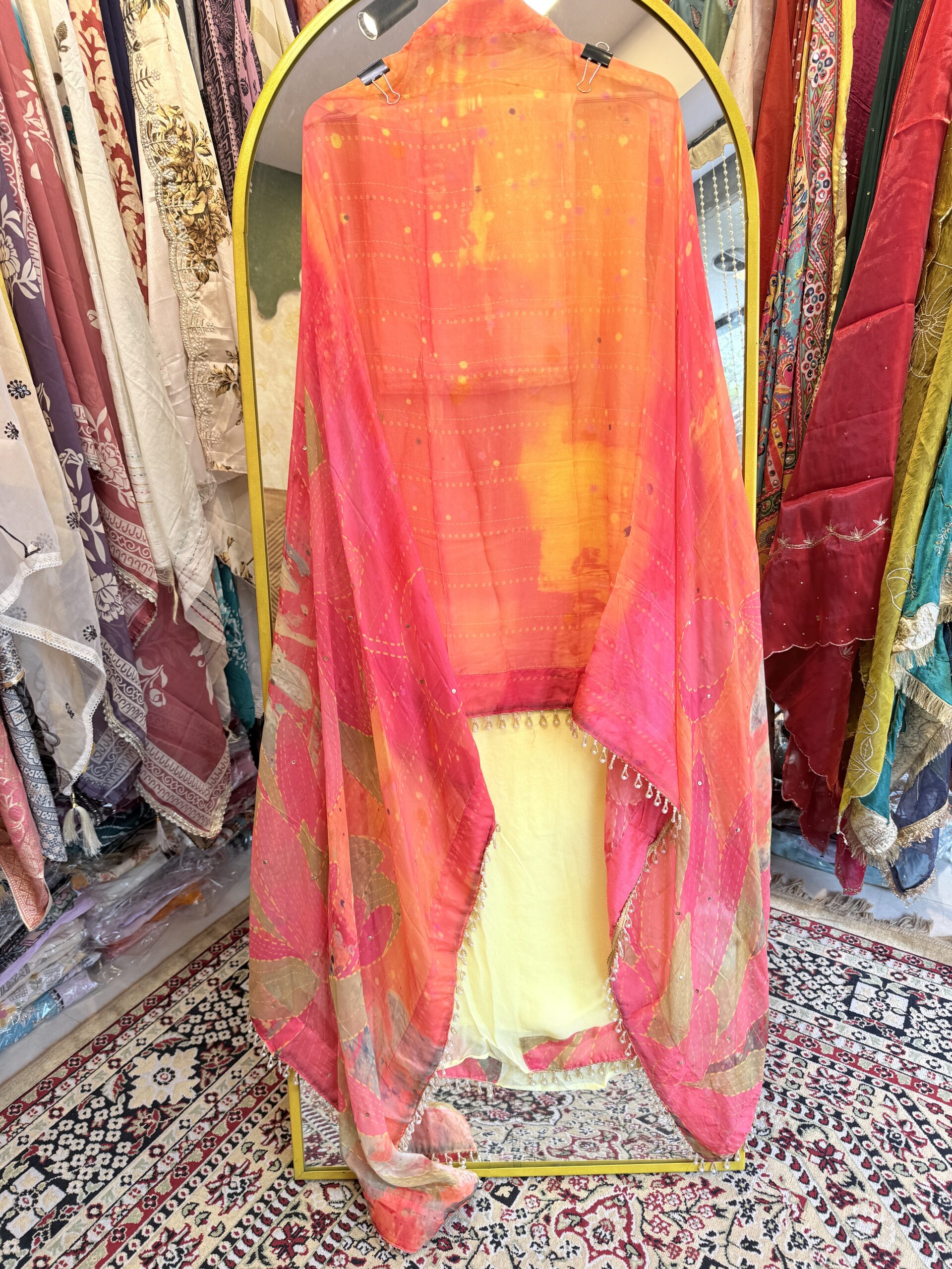 • Pure Organza Dupatta with Pearl Tassle Lace