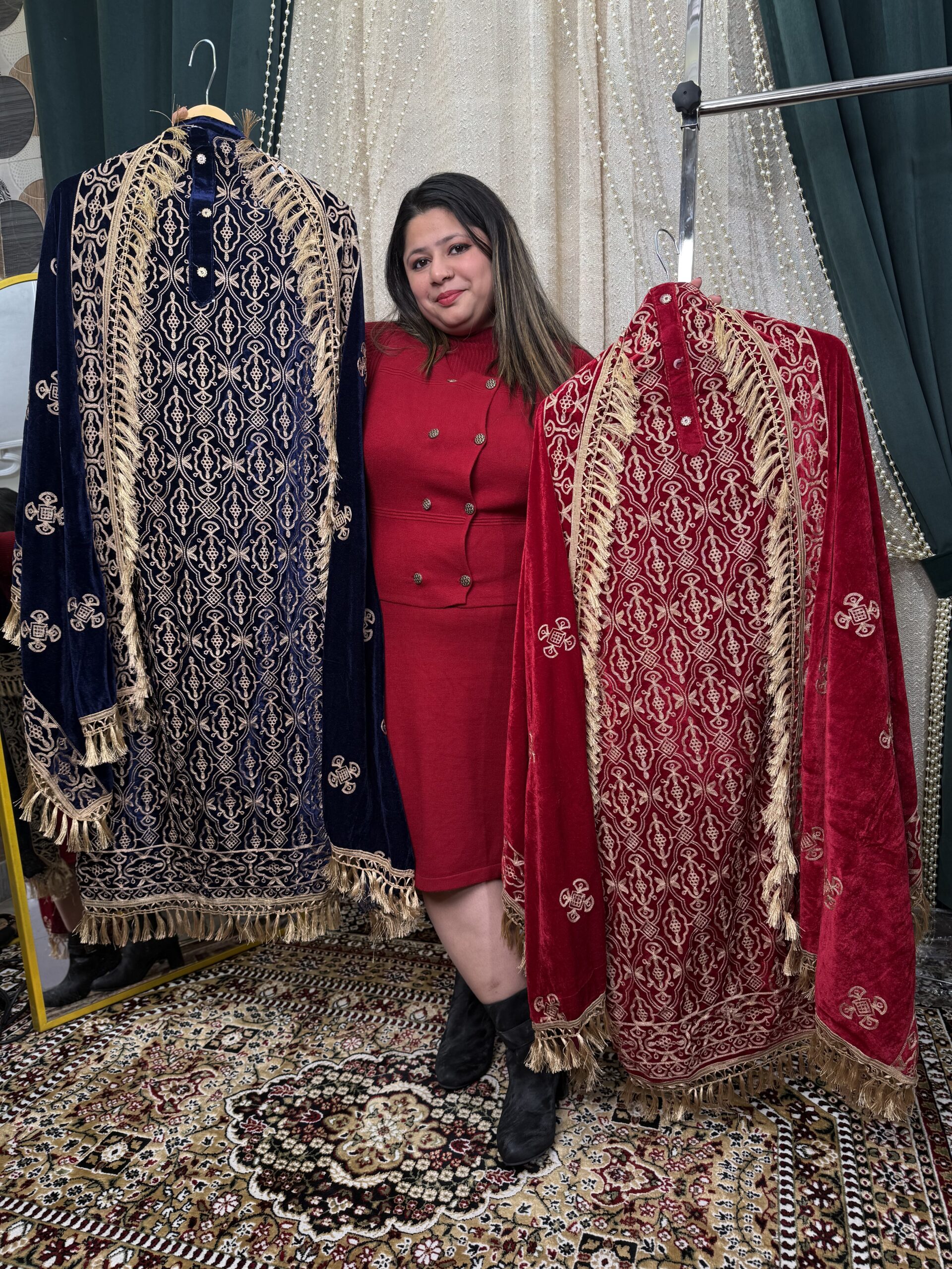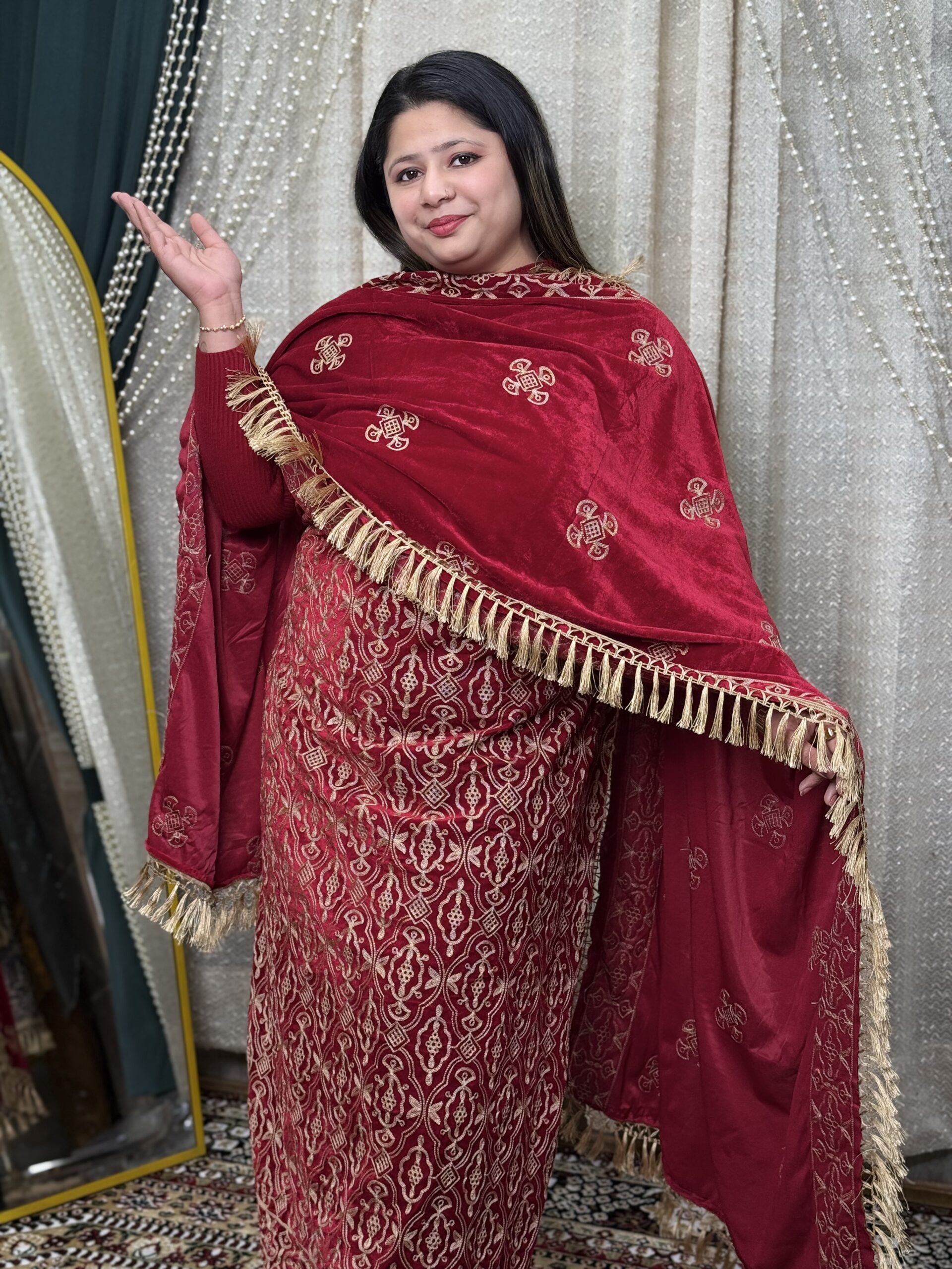 Feel the royal charm of winters with our Premium Velvet Suit, paired with a breathtaking Kashmiri work Dupatta that adds pure elegance to your festive look ❄️✨