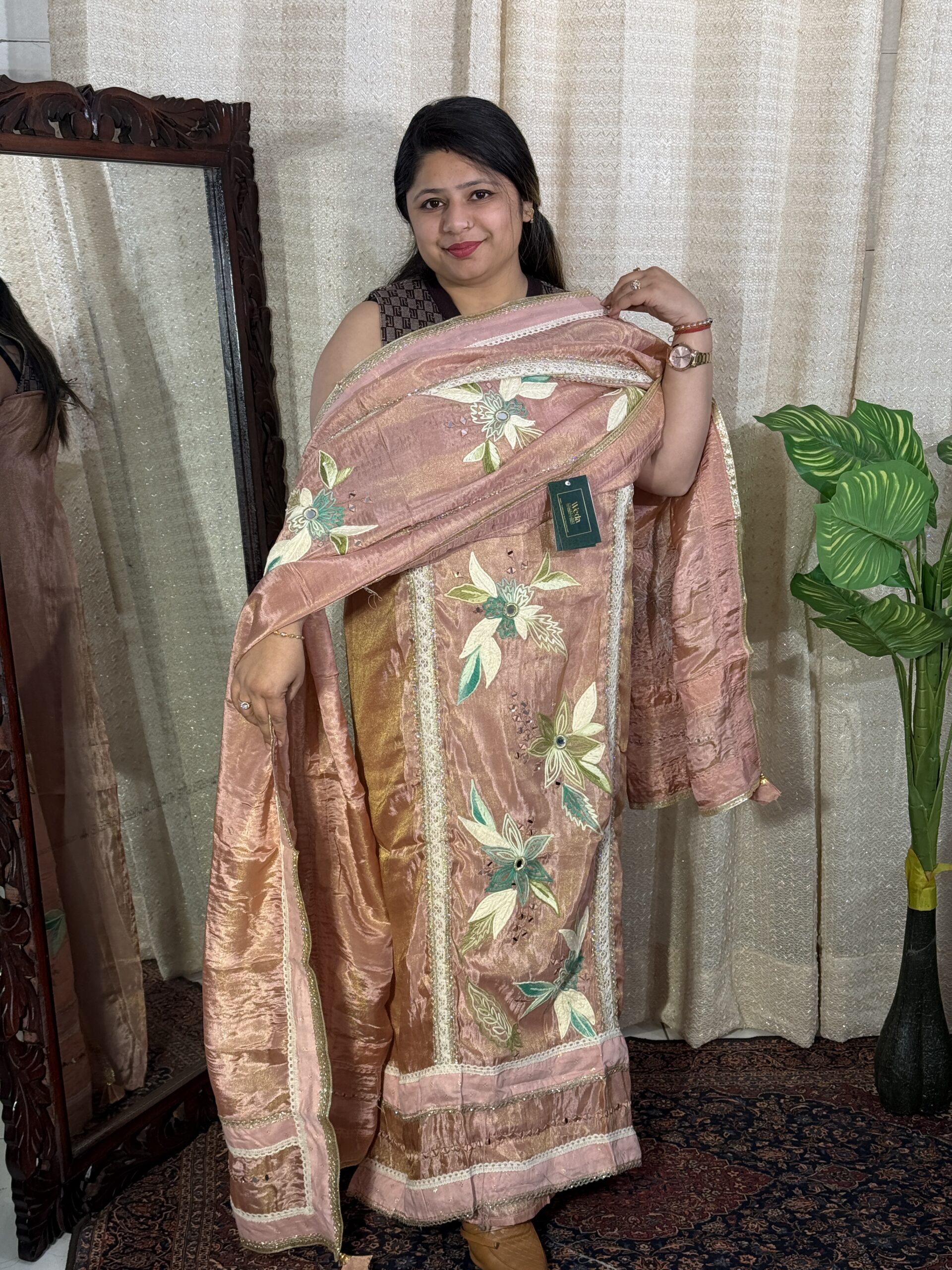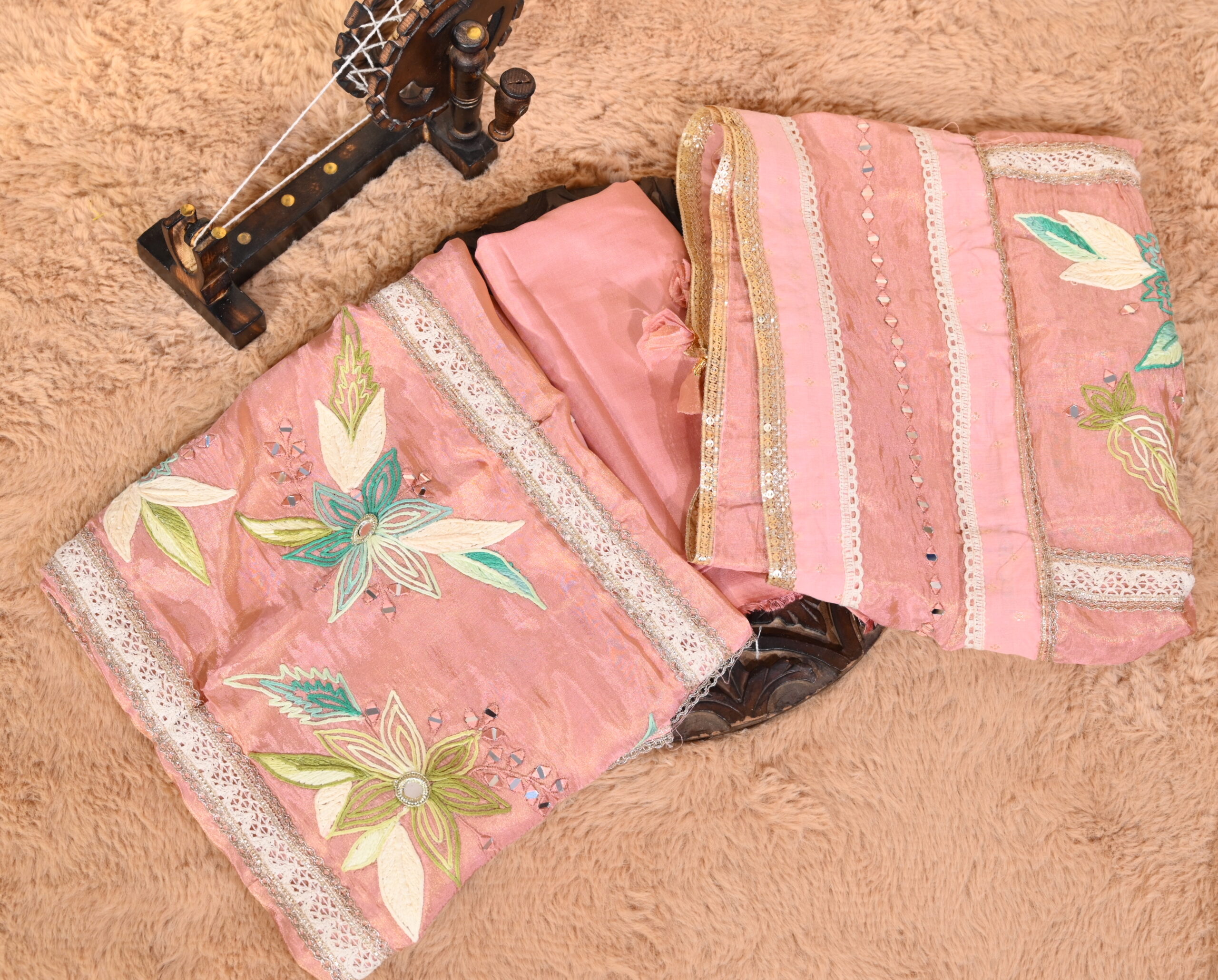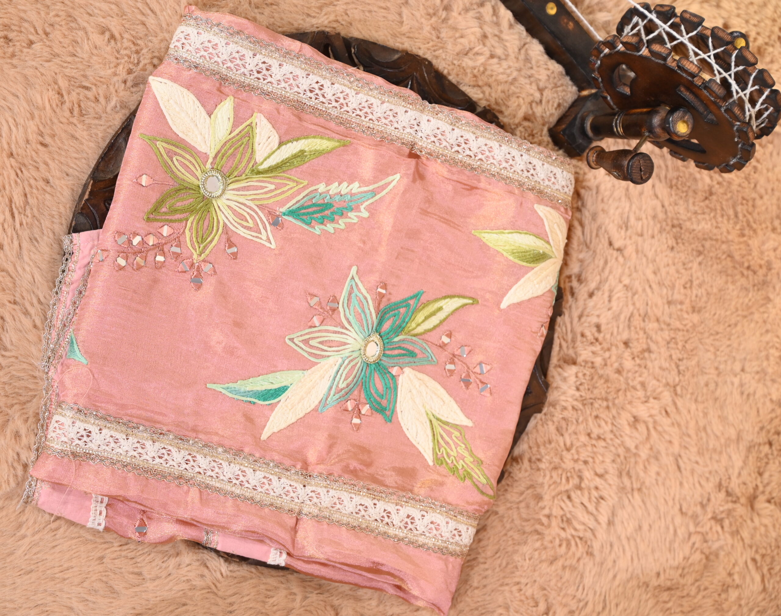 ✔️ Detailing — Lace work with mirror work accents